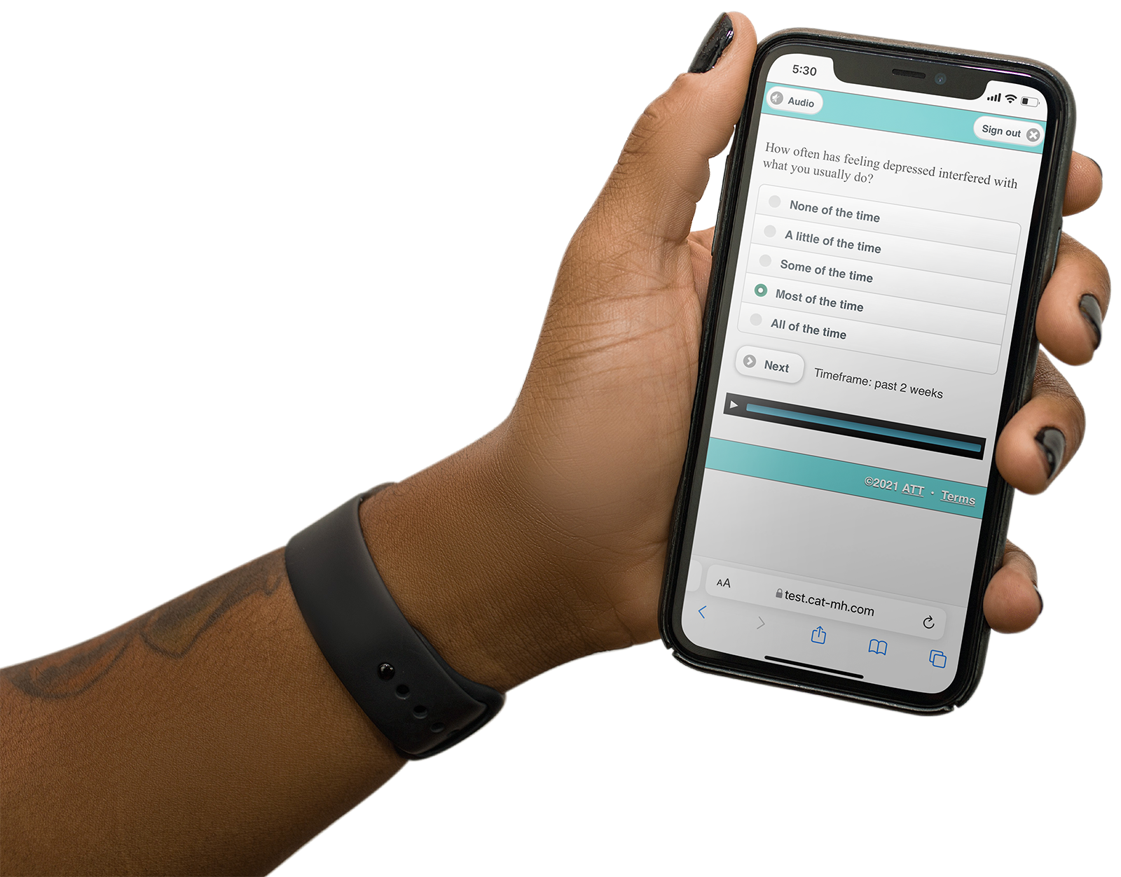The assessment is administered on a smartphone and can be taken in the privacy of your own home. It does not require a trained clinician.